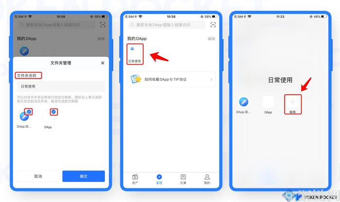 5.添加DApp【编辑】功能,用户可进行[创建新文件夹]及[编辑我的DApp];